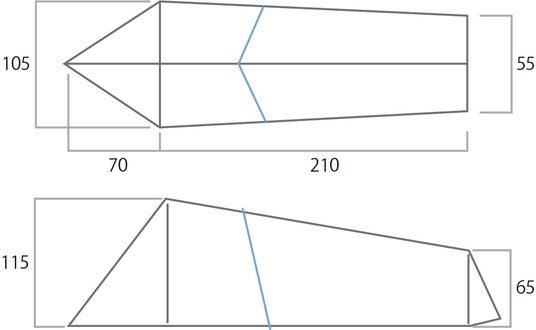 サイズ:205(L) x 105(W) x 115(H) cm、パッキングサイズ 11×25 cm | 材質:本体・フロア : 15D N/R Silicone PU Coated、Inner(door) 20D N/R Monofila、pole DAC Featherlite NFL | 重量:min550g(本体のみ)、packing:763g(内 Pole 105g)| 耐水圧:1500mm | 構成:本体、DACポール、DAC ULペグ6、ガイライン2、スタッフサック | カラー:Stone Gray(ポール Smokey Blue)| その他:出入口2、前室1、ガイラインループ2、ランタンフック2