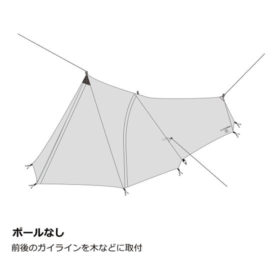 本商品は「Beyond Trekking Pole Shleter」をコンセプトに、日本の山岳環境と高湿度への対策を施しました。シェルター本体のみでもZEROGRAMらしい快適な空間に。さらに専用DACポールを本体に付ければ居住空間を120%利用しながら自立型テントのような安定性が得られます。