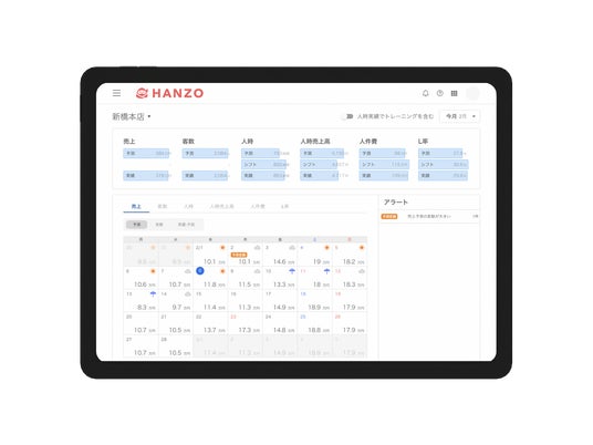 今回導入された「HANZO 人件費」は、康正産業の主力業態である「ふぁみり庵はいから亭」「寿司まどか」合計44店舗の売上や労働時間のデータを可視化・統合的な分析をした上で、店舗別に最適化された人員数のモデルを自動で作成します。本部と店舗間で統一された評価基準が確立され、1時間単位での詳細な課題把握ができます。
