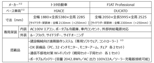 「Smart Construction Teleoperation - モビリティーオフィス」の車種および仕様