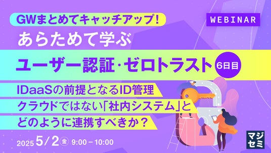 マジセミ株式会社は「GWまとめてキャッチアップ! あらためて学ぶユーザー認証・ゼロトラスト<6日目>」というテーマのウェビナーを開催します。