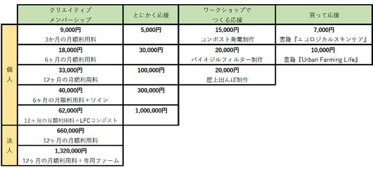 月額3,000円(税込・1名・家族1名増えるごとに+1000円)のメンバーシッププランに3ヶ月、6ヶ月、12ヶ月単位で入っていただくことを基本の応援メニューとしてしますが、ワークショップ参加型、書籍購入型など多彩なメニューを揃えています。