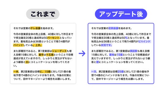 そこでスマート書記は、AIに学習させることなくAIの精度を向上させる独自アルゴリズム(特許出願中)を活用し、「文字起こし」機能の認識精度を大幅に向上させるアップデートを実施します。本アップデートにより、複雑な設定や用語登録を行わなくても、従来通り議事録を作成するだけで、各社に最適化された高精度の文字起こしが可能となります。