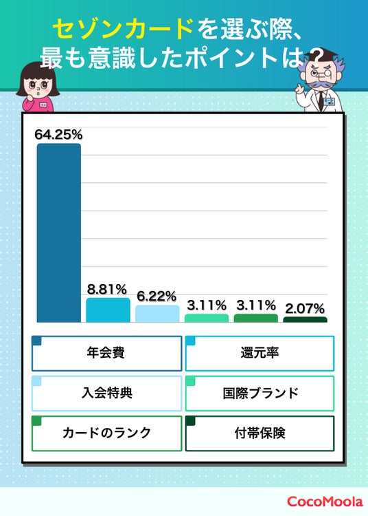 株式会社ゼロアクセル(本社:東京都千代田区、代表取締役:大福裕貴、以下ゼロアクセル)は自社運営サイト『ココモーラ』にて、「セゾンカードに関するアンケート調査」を行いました。