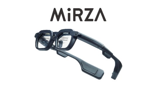 MiRZAは、コノキューデバイスが開発したXRグラスです。着脱のしやすさ・疲れにくさを重視し、約125gの軽量で一般的なメガネに近い形状を実現。MiRZAと無線接続したスマートフォンを用いてハンドジェスチャーなどでコンテンツを操作いただけます。