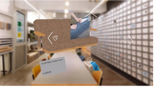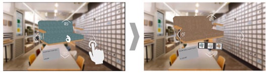 家具の3Dモデル表示に加え、ハンドジェスチャーによる操作で、カラーの変更や商品説明動画の視聴なども可能です。