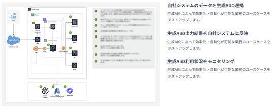 チャット形式の生成AI活用だけではなく、自社システムと生成AIを連携させることで、業務でのより深い活用を可能にします。