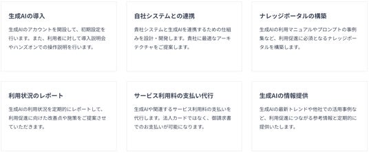 業務システムとの連携やセキュリティなど、導入時の課題になりやすい点を解消し、顧客専用の生成AI環境を構築・運用します。