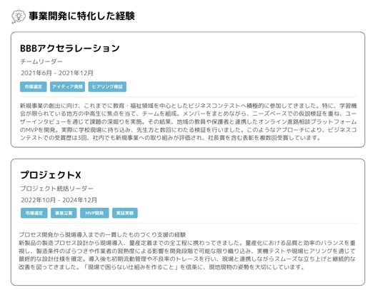Point 2 事業開発に関する経験だけに特化した情報を集約