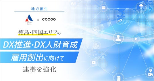 「人財」×「デジタル」事業で社会のDX化を支援するコクー株式会社(本社:東京都千代田区、代表取締役CEO:入江 雄介)は、株式会社阿波銀行(本店:徳島県徳島市、頭取:福永 丈久)の投資専門子会社である阿波銀キャピタル株式会社(本店:徳島県徳島市、代表取締役 松島 賢治)と連携し、徳島・四国エリアのDX推進、DX人財育成、雇用創出に向けた取り組みを開始したことをお知らせいたします。