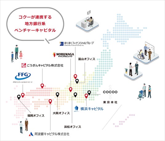 また、2022年以降、株式会社FFGベンチャービジネスパートナーズ(所在地:福岡県福岡市)、ほくほくキャピタル株式会社(所在地:富山県富山市)、横浜キャピタル株式会社(所在地:神奈川県横浜市)、ごうぎんキャピタル株式会社(所在地:島根県松江市)、NOBUNAGAキャピタルビレッジ株式会社(所在地:岐阜県岐阜市)らの地方銀行系ベンチャーキャピタルを引受先とする第三者割当増資による資金調達を実施するとともに地域のDX推進、DX人財育成、雇用創出を目的に連携を強化。これまでに地方銀行のネットワークにより、地方自治体・地元企業とのマッチアップイベント、ネットワーキングイベントに多数参加し、業務効率化・生産性向上やDX人財不足等の課題解決に向き合ってまいりました。