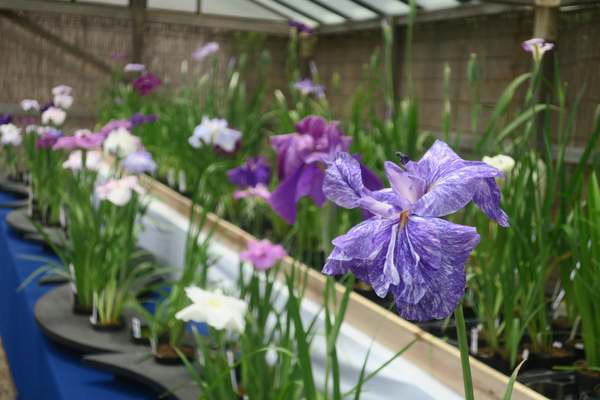 三溪園では、江戸時代から改良が続くハナショウブ約120鉢が展示される「花しょうぶ展」が行われる。鉢植えや切り花として展示されるほか、栽培に関する相談も無料で受け付けられるという。