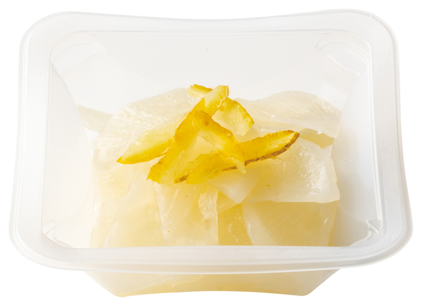 「さっぱりゆず大根」は、甘酢でさっぱりとした味に仕立て、ゆずの皮をトッピング。揚げ物との相性も良く、爽やかな香りが広がる一品。