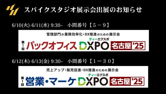 【展示会出展のお知らせ】スパイクスタジオ、6月開催「DXPO名古屋’25」に2展同時出展!