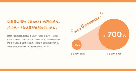 社内の口コミで予想以上に拡大希望が集まったため、試験導入終了後に本格導入へ進めることといたしました。