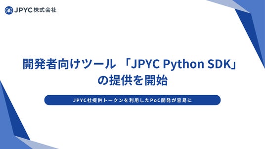 JPYC株式会社は開発者向けツール「JPYC Python SDK」の提供を開始いたします。本SDKは、Python環境に特化したシンプルなインターフェースでPoC(概念実証)開発を加速し、ブロックチェーンアプリケーションの開発を支援します。