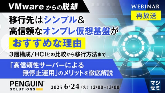 マジセミ株式会社は、大変好評をいただいた「VMWare移行先、オンプレ仮想基盤の選択肢」というテーマのウェビナーを再放送します。