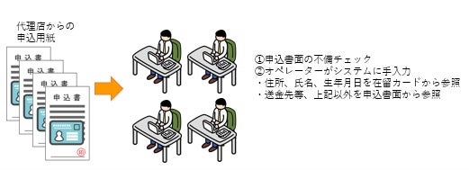 SBIレミットでは海外送金サービスのペーパーレス化を推進するためスマートフォンアプリの利用促進に取り組んできました。しかし、スマートフォンを所有していないお客様や、電波環境の整っていない地域での利用等、一部では依然として紙による申込手続きが必要とされています。そのため、オペレーターによる申込書類の目視確認や手入力によるデータ処理といった、負担の大きい事務作業が継続的に発生していました。