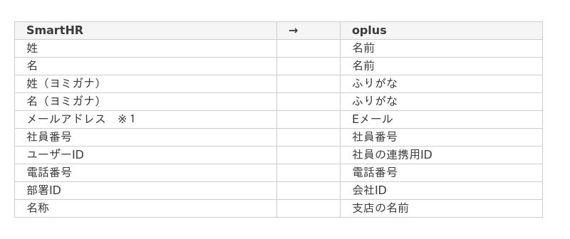 本連携によって、SmartHRの「従業員データ」から、oplusの「スタッフ情報」を自動生成することが可能になります。