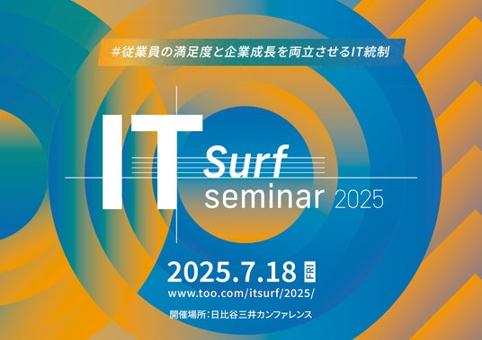 クリエイティブ市場の総合商社・株式会社Too(本社/東京都港区虎ノ門3-4-7、社長/石井剛太、以下Too)は、「IT surf seminar 2025 - 従業員の満足度と企業成長を両立させるIT統制 -」を2025年7月18日(金)に東京・日比谷でリアル開催します。