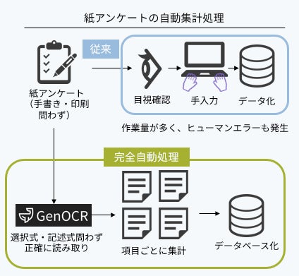 ジンベイ株式会社(本社:神奈川県横浜市、代表取締役:上田英介)は、生成AI搭載OCRソリューション「ジンベイGenOCR」による紙アンケートの自動読み取り機能を強化し、手入力に依存していたアンケート集計業務の省力化を実現しています。自治体、医療、教育、イベント運営など、紙アンケートを扱う幅広い現場で導入が進んでいます。