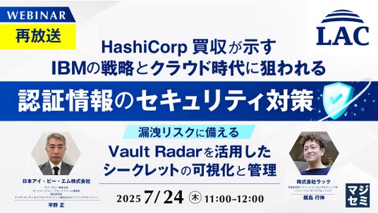 マジセミ株式会社は「【再放送】HashiCorp買収が示すIBMの戦略とクラウド時代に狙われる認証情報のセキュリティ対策」というテーマのウェビナーを開催します。