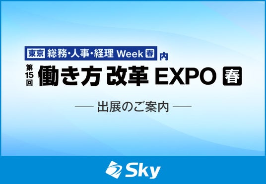 Sky株式会社は、6月25日(水)~27日(金)に東京ビッグサイトで開催される、生成AI・DXなど業務改革のための展示会「第15回 働き方改革 EXPO」に出展いたします。