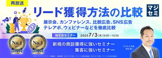 マジセミ株式会社は、大変好評をいただいた「【再放送】リード獲得方法の比較」というテーマのウェビナーを再放送します。