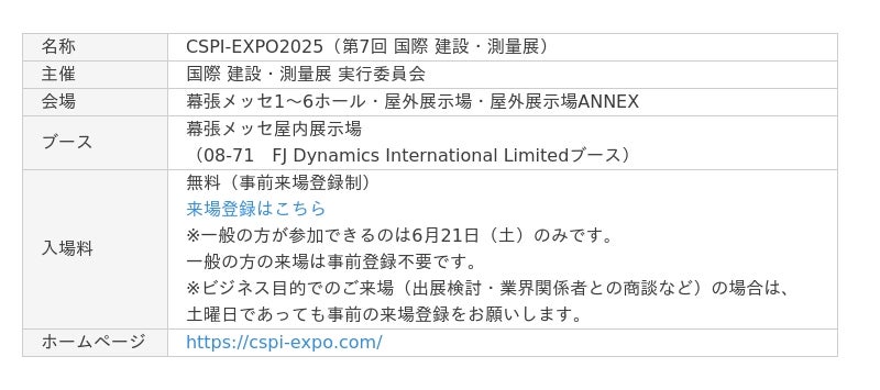 CSPI-EXPO2025は開催を通じ、建設・測量業界の発展に貢献すると同時に、業界の課題解決・環境改善・生産性向上に貢献することを目的とした展示会です。