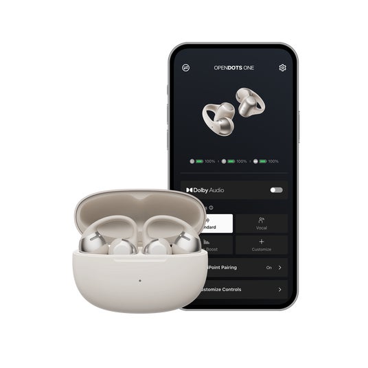 左右を区別せず使えるイヤホン最新のダイナミックイヤー検出技術により、OpenDots ONEは装着されたイヤホンがどちらの耳にあるかを自動で検出し、左右を気にせず装着できます。そのまま装着して再生できます。使用後は、充電ケースへイヤホンを収納するだけでOK。左右を気にする必要はありません。