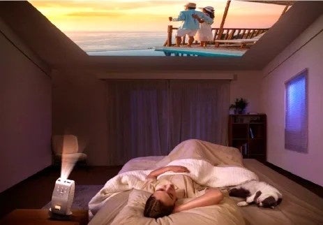・壁はもちろんロフトや傾斜のある天井にも好みの角度で投影可能。寝室での使用に最適