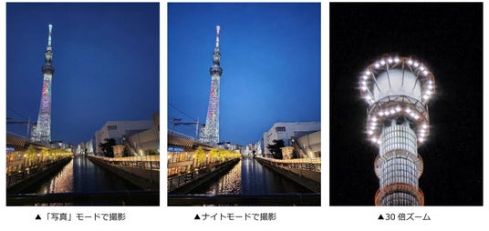 東京スカイツリーは高さがあるため、全体を収める場合は、広角での撮影がおすすめです。「Samsung Galaxy S25 Ultra」は広角レンズ約2億画素、超広角レンズは約5,000万画素もあり、広角で撮影しても、夜に撮影しても高画質でとても驚きました。夜のスカイツリーは、ナイトモードを駆使して綺麗に撮影するのも良いですね。