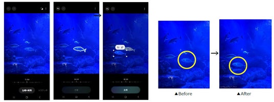 さらに、「生成AI編集」機能を使用すれば、写真のいきものを自由に動かすこともできます。対象のいきものを囲ってそのまま動かすと、違う場所に移動させることができ、撮影した写真を楽しく編集・加工できます。