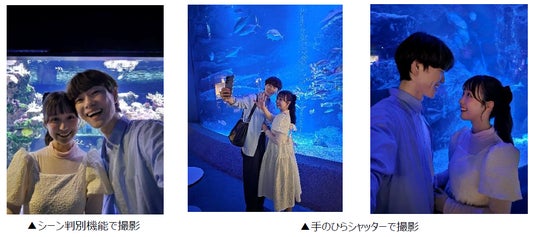 普段、暗い場所ではセルフィーをしても綺麗に撮影することが難しいので、後ろ姿を撮影することが多いのですが、ナイトモードだと、顔が鮮明に写ってびっくりしました!水族館以外でも、イルミネーションや映画館、少し暗めのバー、レストランなどの暗い雰囲気の場所での撮影にもおすすめの機能です。
