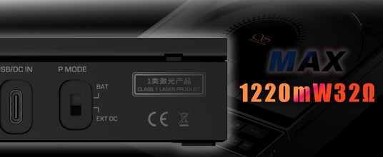 EC Zero Tは、筐体背面の「P MODE」を「EXT DC」に切り替えることで、バッテリー駆動からDC外部電力入力のモードに切り替わり、「最大1220mW@32Ω」の高出力サウンドで製品をお楽しみ頂けます。
