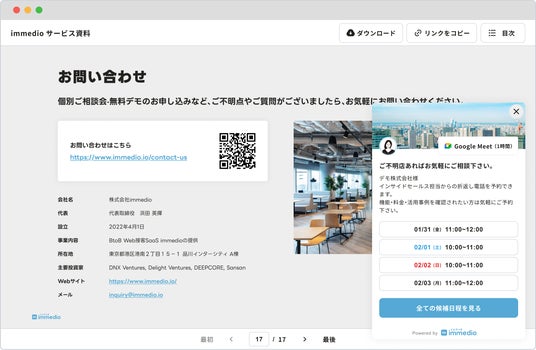 株式会社immedioimmedioは「未来をつくる出会いをふやす」をミッションに、BtoB Web接客ツール「immedio」を提供しています。