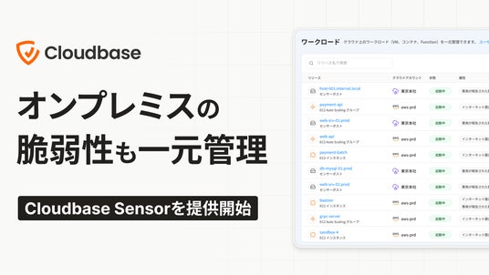 Cloudbase株式会社(本社:東京都港区、代表:岩佐晃也)は、同社が提供するCNAPP製品Cloudbaseに、オンプレミス環境やプライベートクラウド(以下オンプレ環境)における資産管理および脆弱性の検出・管理を実現する新機能「Cloudbase Sensor」をリリースしたことをご報告いたします。