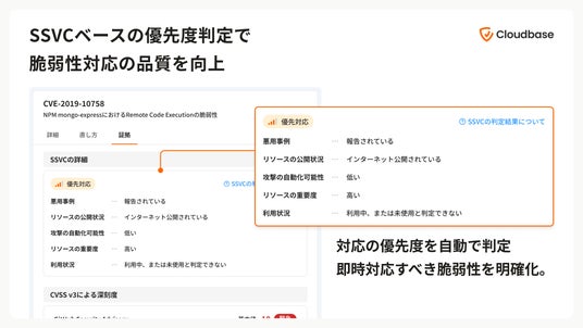 Cloudbaseで検出された脆弱性はSSVC(Stakeholder-Specific Vulnerability Categorization)をベースにした判定ロジックにより対応優先度が自動で判定されます。