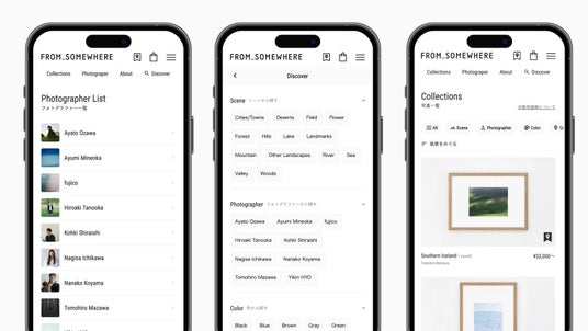 株式会社KAFUL(代表取締役 白石弘毅)が運営する風景写真専門のオンラインストア「FROM_SOMEWHERE(フロム・サムウェア)」は、全面的にリニューアルを行いました。今回のリニューアルでは、写真をもっと身近に、そして自由に楽しんでいただけるよう、新機能や新仕様を多数導入。写真を飾ることが、暮らしの中に根づいていく体験のデザインを目指しました。