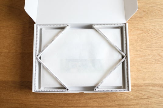 大切な写真をご購入いただいた方へ安心してお届けするために、フレームに最適化した発送箱を開発しました。硬質段ボール素材で作成したコーナーをフレームの四つ角にはめ込み使用することで、フレームが箱の中で宙に浮いたような状態で固定することができます。シンプルな構造ながら、フレームの配送時にいちばん破損しやすいといわれる角を守る構造になっています。このボックスは、そのまま収納箱としてもお使いいただけるように、配送ラベルを直接貼らない構造にしました。また側面には、収納物のメモを書いていただけるようなスペースを設けています。