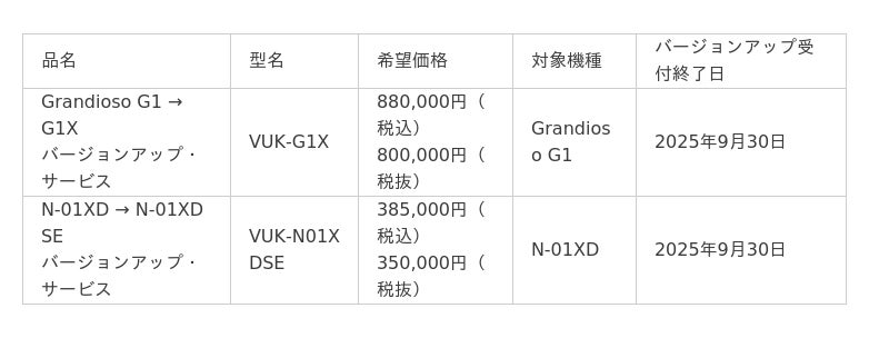 ESOTERIC(エソテリック)は、製品を末永くご使用いただけるよう、エンドユーザー様向けに各種バージョンアップ・サービスをご案内しておりますが、Grandioso G1、N-01XDを対象としたバージョンアップ・サービス「VUK-G1X」、「VUK-N01XDSE」につきまして、2025年9月30日を持ちまして新規お申し込み受付を終了させていただきます。