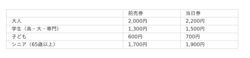 当日券 :7月19日(土) 00:00 ~ 9月23日(火)19:00まで