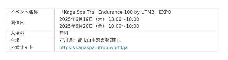 Shokz(ショックス)は、2025年6月19日(木)と6月20日(金)の二日間、「Kaga Spa Trail Endurance 100 by UTMB」のEXPO会場にて、 Shokzのオープンイヤー型イヤホンの展示、試聴、ならびに販売を行います。また、アンケート回答者には素敵なプレゼントをご用意しております。
