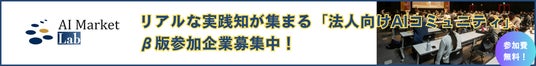 AI Marketでは、法人向けAIコミュニティ「AI Market Lab」のβ版参加企業を限定募集しております。審査制の法人専用コミュニティで、企業が直面するAI導入の試行錯誤のプロセスを共有・学習できるコミュニティです。