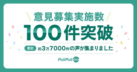 行政に声を届けるウェブサイト『PoliPoli Gov』での意見募集実施数が100件を突破!