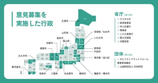 これまで、7つの省庁、21の自治体、2団体と連携し、約3万7000件(※集計中の案件を除く)のコメントが寄せられました。これらの声は、行政が政策を検討・立案する上での重要な参考情報として活用されています。
