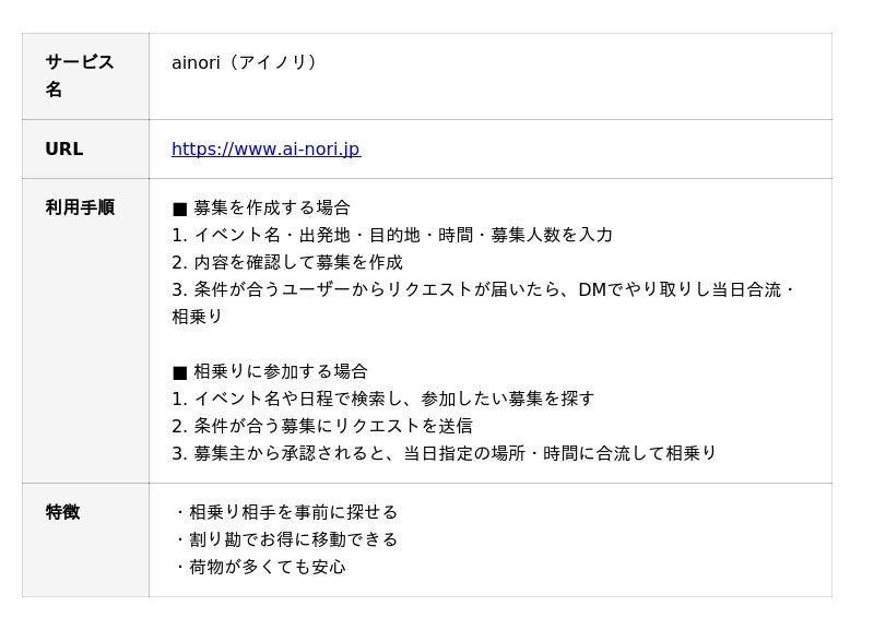 【混雑時にスマート移動】イベント向けタクシー相乗りサービス「ainori」正式リリース