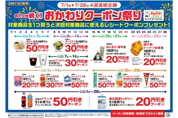 セブン-イレブンは7月1日から約1ヵ月間において「SPECIAL 夏祭」キャンペーンを開催します。