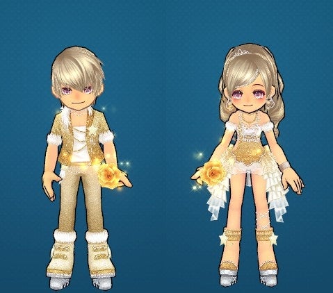 新たに「煌めく光彩セット」「澄み渡る鏡水セット」の2種類を期間限定で販売いたします。いずれもヘア・ウェア・パンツ(スカート)・スケート・アクセの5点セットで、3,000 JWLでの販売となります。