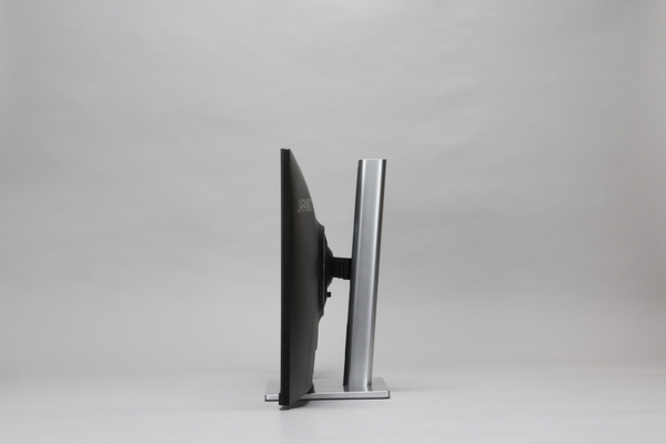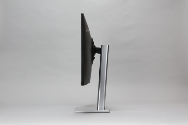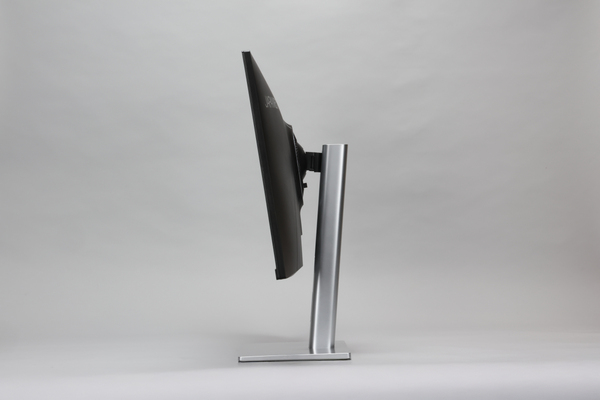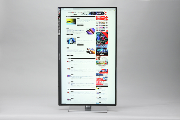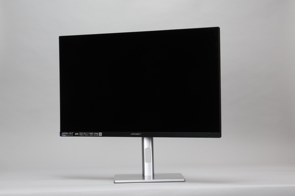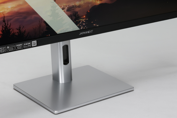 JN-IPS27G1632UF-HSPのスタンドはプラスチック素材でできているが、銀メッキで彩られているからか、6万円台とは思えぬ高級感が際立っていた。ここで注目すべきは、JAPANNEXT製品でおなじみの「昇降式多機能スタンド」だ。